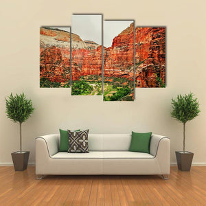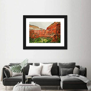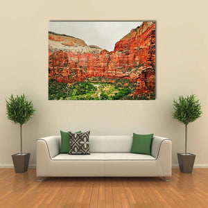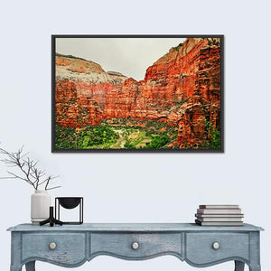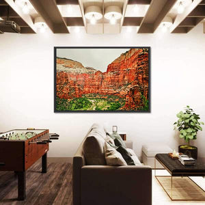 This canvas features the majestic red rock formations and green valleys of Zion National Park. Its serene and natural atmosphere makes it an excellent choice for enhancing your space with a touch of landscape beauty.