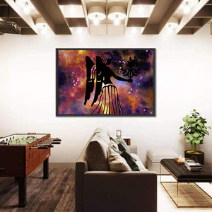 Celebrate the Virgo zodiac sign with this striking canvas art. Featuring a silhouette of an angelic figure against a vibrant galaxy backdrop, it evokes a mystical and celestial mood that enhances any space.